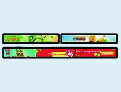針對新零售無人貨架、商超貨架等設計的條形液晶屏顯示方案,將原有貨架上的價格標簽替換成條形液晶屏,在商品顯示價格的同時還可以顯示產品廣告、促銷信息、二維碼等,同時支持遠程更新,提升消費者的購物體驗和商品的曝光量。
